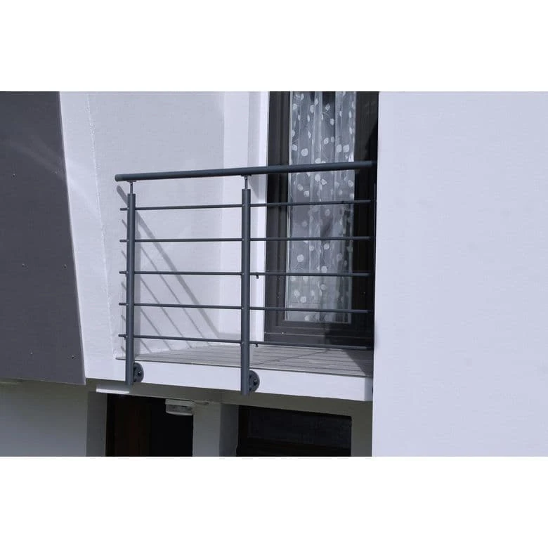 Présentant des poteaux ronds, cette balustrade en aluminium vous est proposée en différents coloris sur notre site et en magasin. Dotée de soubassement en verre acrylique, elle est adaptée à une pose latérale. La version pour pose à plat est également en vente sur notre site. 100% en aluminium, elle est compatible pour un usage intérieur et extérieur