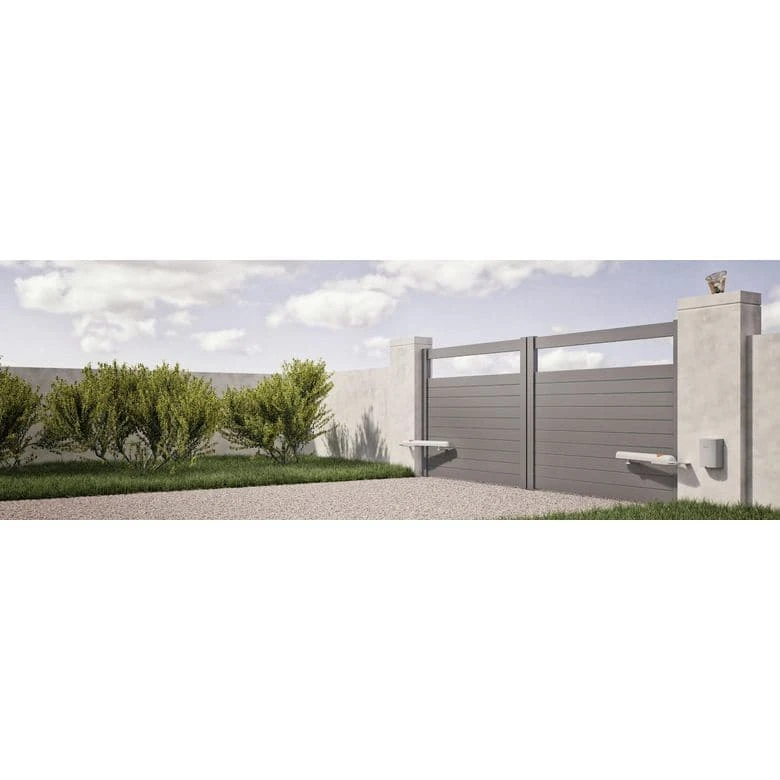 Kit complet de motorisation à vérin pour tout type de portail battant, plein ou ajouré, à deux vantaux allant jusqu’à 2,2 m de largeur ou 250 kg chacun. Puissant : Motorisation adaptées aux portails à habillage plein, avec vent modéré à fort. Gestions et réglages de force. Pratique : Fins de course électromécaniques et réglable intégrés au moteur. Ouverture piétonne réglable. Compatible avec le kit d’alimentation solaire SoleKit. Confortable : Pour une meilleure visibilité des lieux de passage, possibilité d’intégrer aux photocellules un éclairage à LED (LM100 en option). Extension de garantie, clavier à code radio DS100 et 2 télécommandes ECCO5 supplémentaires incluses dans ce pack.