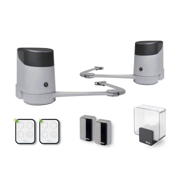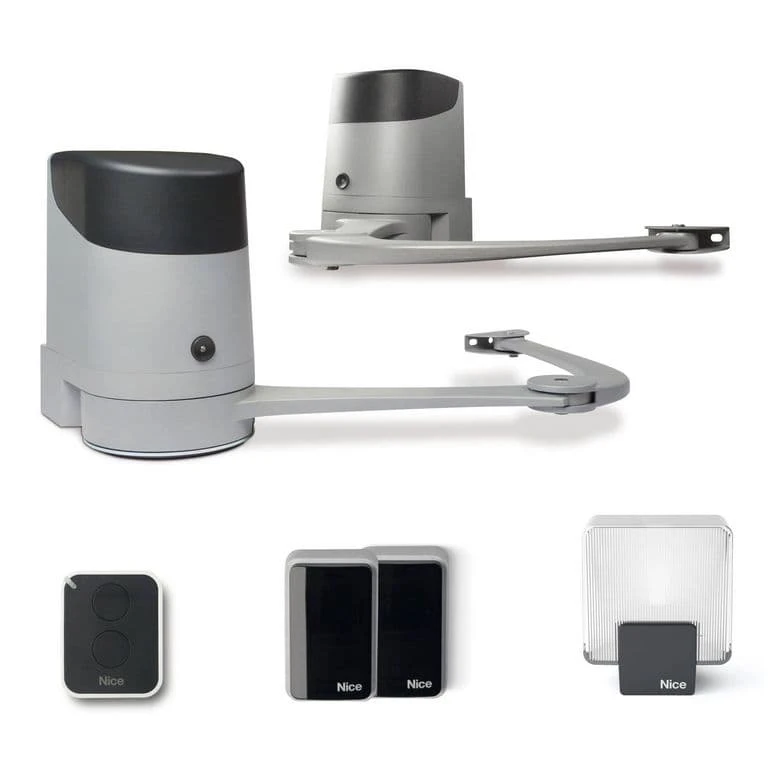 La motorisation professionnelle Hopp à bras articulés s’adapte sur tout type de portail battant (largeur 2,4 m maxi ou 250 kg par vantail) et peut être couplée à une alimentation solaire (SoleKit).